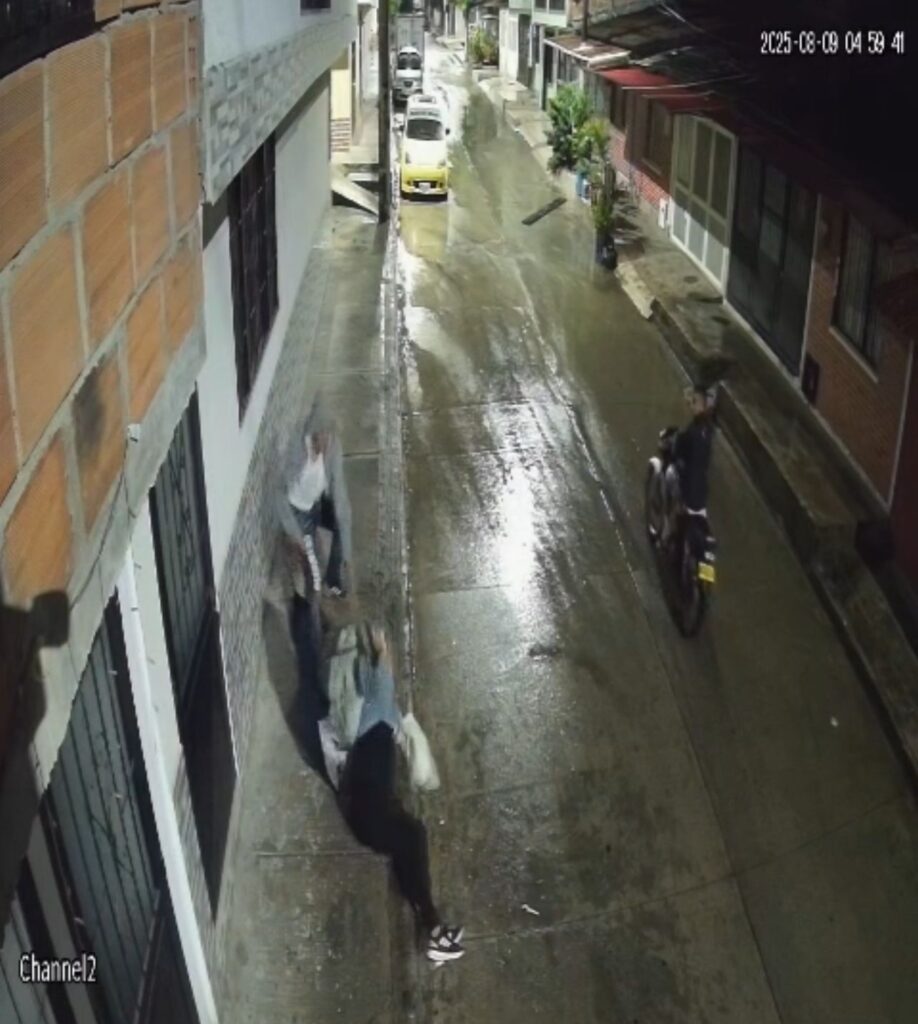 Una cámara de seguridad del barrio Villas de Gualará registró el violento ataque a una mujer, por parte de un sujeto que iba en compañía de otro, a bordo de una motocicleta, de la cual se bajó, para hurtarle las pertenencias.