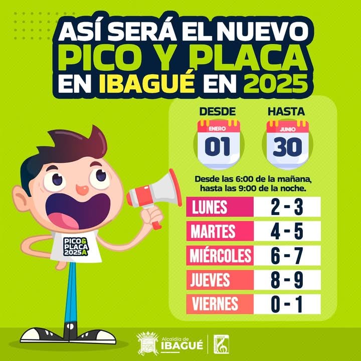Con la llegada del nuevo año, la medida del pico y placa cambiará en Ibagué. De acuerdo con la Secretaría de Movilidad, la modificación será de la siguiente manera: