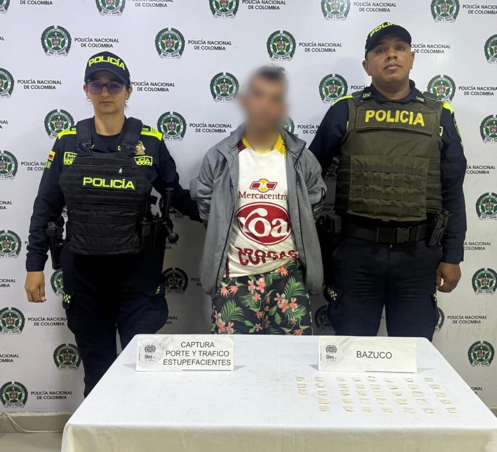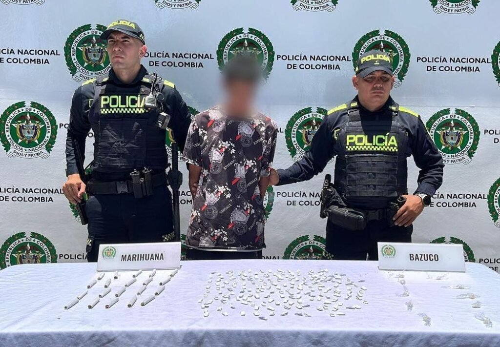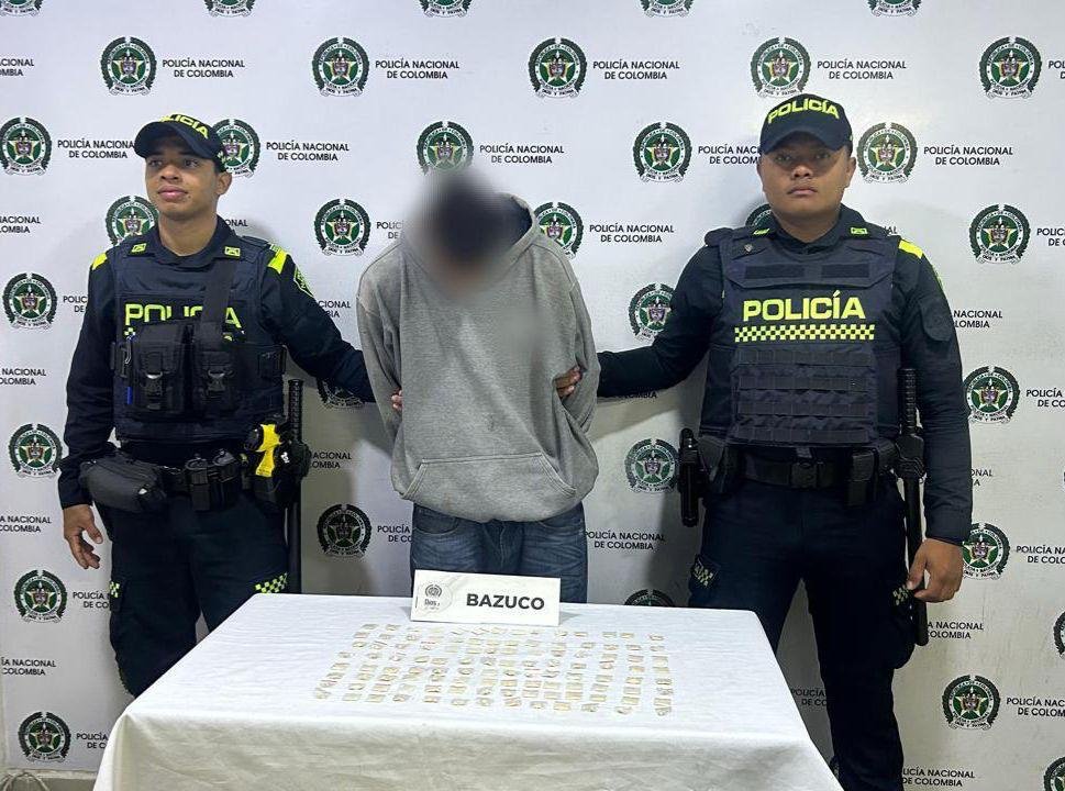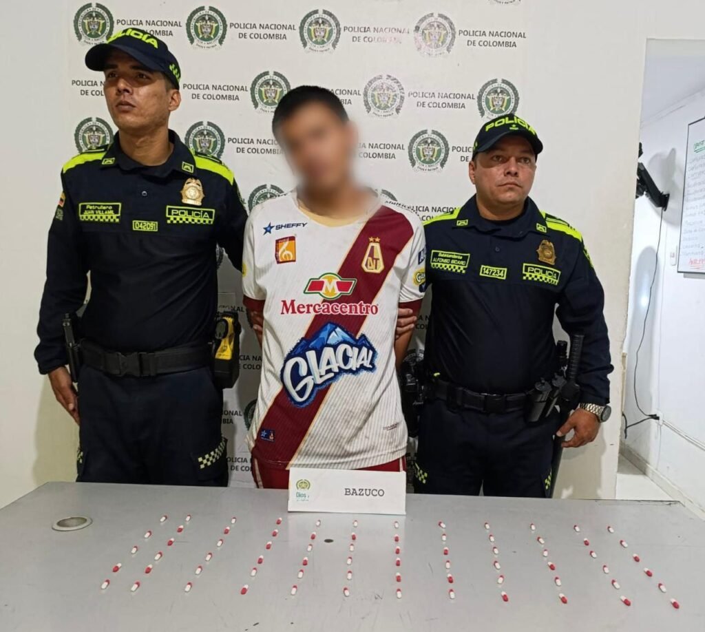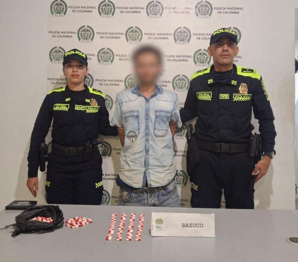 Por otra parte, en el barrio Bosque parte alta, un joven, de 18 años de edad, fue capturado al momento de ser requerido por la zona de atención policial 18 del CAI Variante, donde pretendía evadir el registro personal al esconder dentro de una botella plástica de gaseosa 71 cápsulas de basuco con un peso de 30 gramos siendo sorprendió por los uniformados.