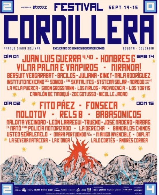 Molotov, Fito Paez, Juan Luis Guerra, Hombres G, Vilma Palma e Vampiros y otros más estarán durante esos dos días en el Cordillera 2024.