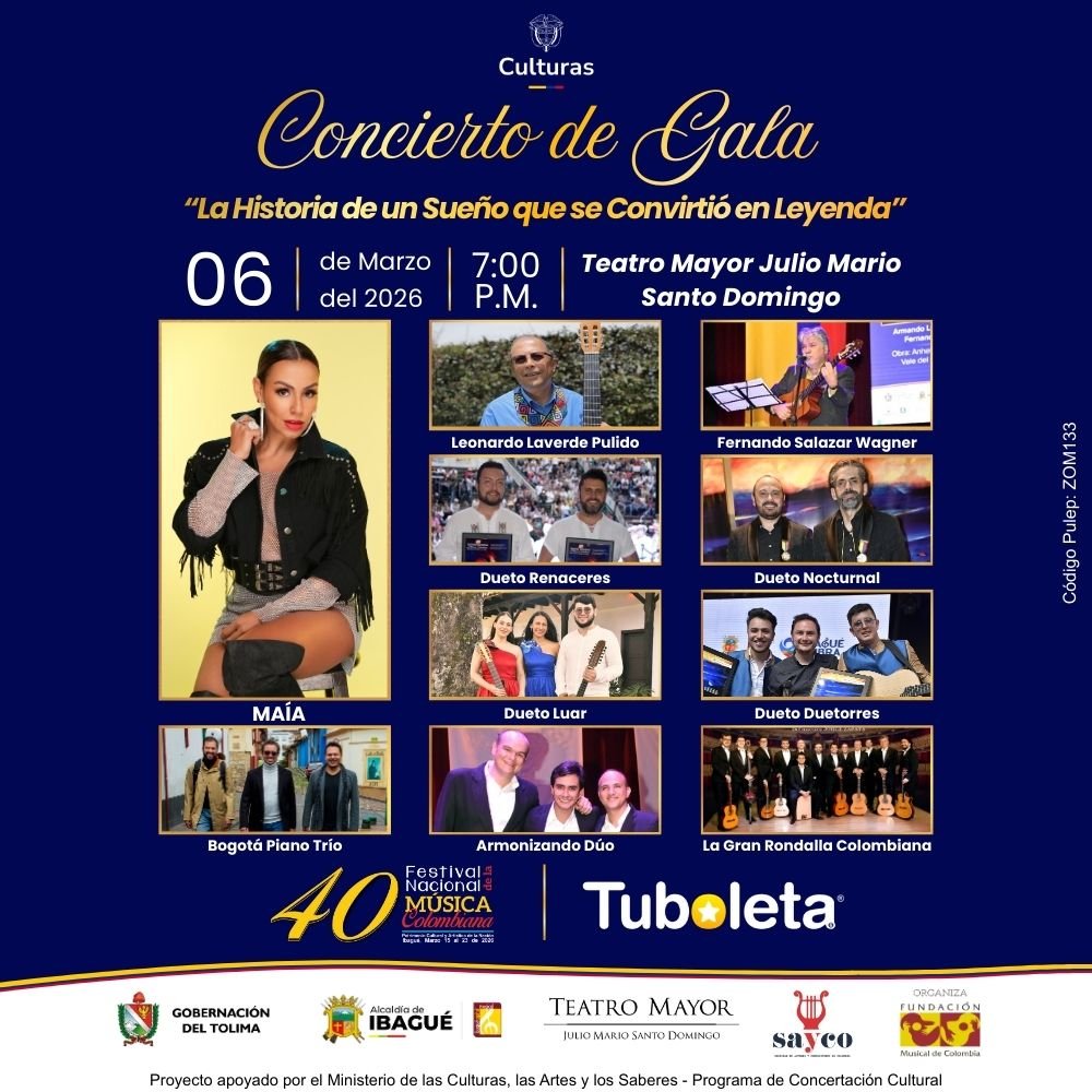 La cita será este viernes 6 de marzo, a las 7:00 p. m., en el Teatro Mayor Julio Mario Santo Domingo, en Bogotá, escenario que se vestirá de gala para celebrar cuatro décadas del festival más importante de la música andina colombiana.