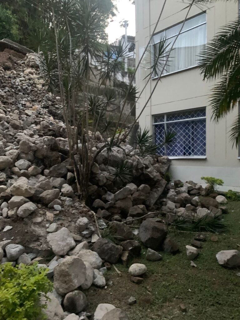 _“Desde que se realizó el llamado de la comunidad, acudimos al lugar de forma inmediata con nuestras unidades bomberiles con el propósito de atender a las familias damnificadas y evaluar los daños estructurales de la edificación afectada. El reporte nos indica que el deslizamiento no dejó personas lesionadas”,_ indicó Jean Pineda, director del Cuerpo Oficial de Bomberos.