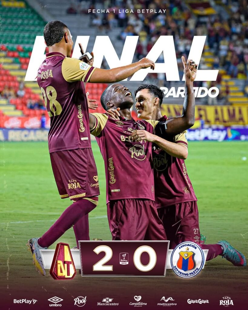 Continuó la primera fecha de la Liga BetPlay Dimayor 2025-I con el duelo entre el Deportes Tolima y Deportivo Pasto. El conjunto ‘Pijao’ se quedó con los tres puntos, ya que derrotó a los ‘volcánicos’ 2-0, siendo muy superior durante los 90 minutos más la adición.