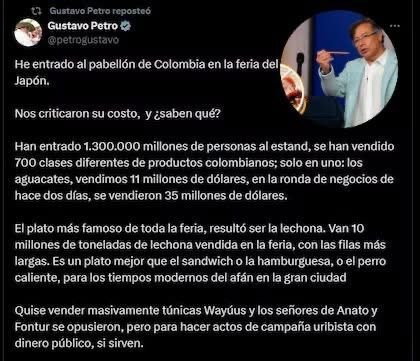 Vender 10 millones de toneladas de lechona sería un verdadero Guinness Récord que requeriría Planeación y logística nunca antes vistas. Sin embargo, según el presidente Gustavo Petro, esa es la cifra que se ha consumido en la exposición de Osaka en Japón y que explica la enorme inversión en el pabellón de Colombia de 8 millones de dólares.