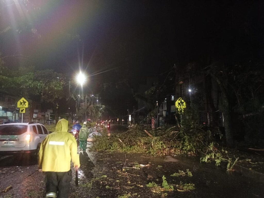 Las cuatro estaciones de bomberos oficiales fueron desplegadas en la ciudad, con 18 unidades activas y apoyo de bomberos voluntarios en la zona de Picaleña. Uno de los casos reportados corresponde a un árbol de gran tamaño que cayó en la avenida Mirolindo, frente a la empresa Envía, donde ya se adelantan labores de remoción.