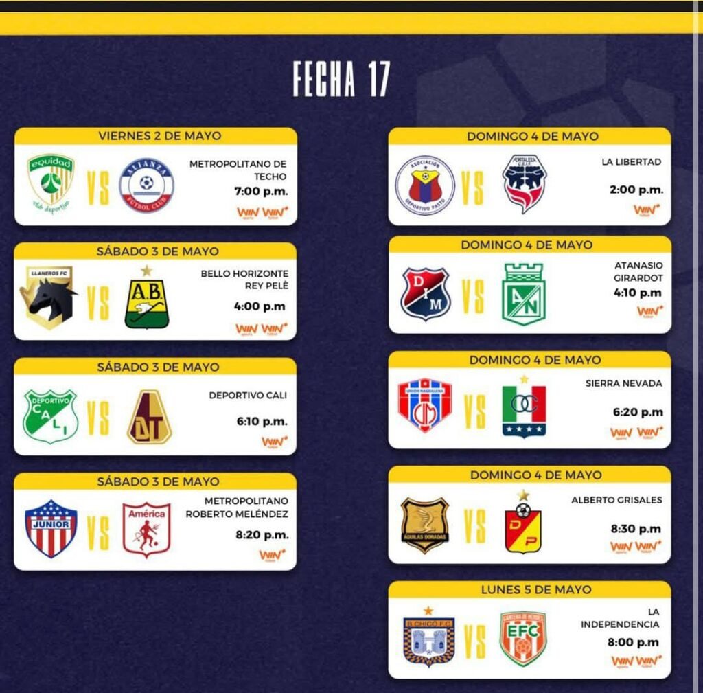 La programación de la fecha 17 del fútbol colombiano tendrá compromisos importantes que pueden modificar la tabla de posiciones, pero sin duda, dos juegos se llevarán toda la atención: Junior vs. América y, el plato fuerte, el clásico paisa entre DIM y Atlético Nacional.