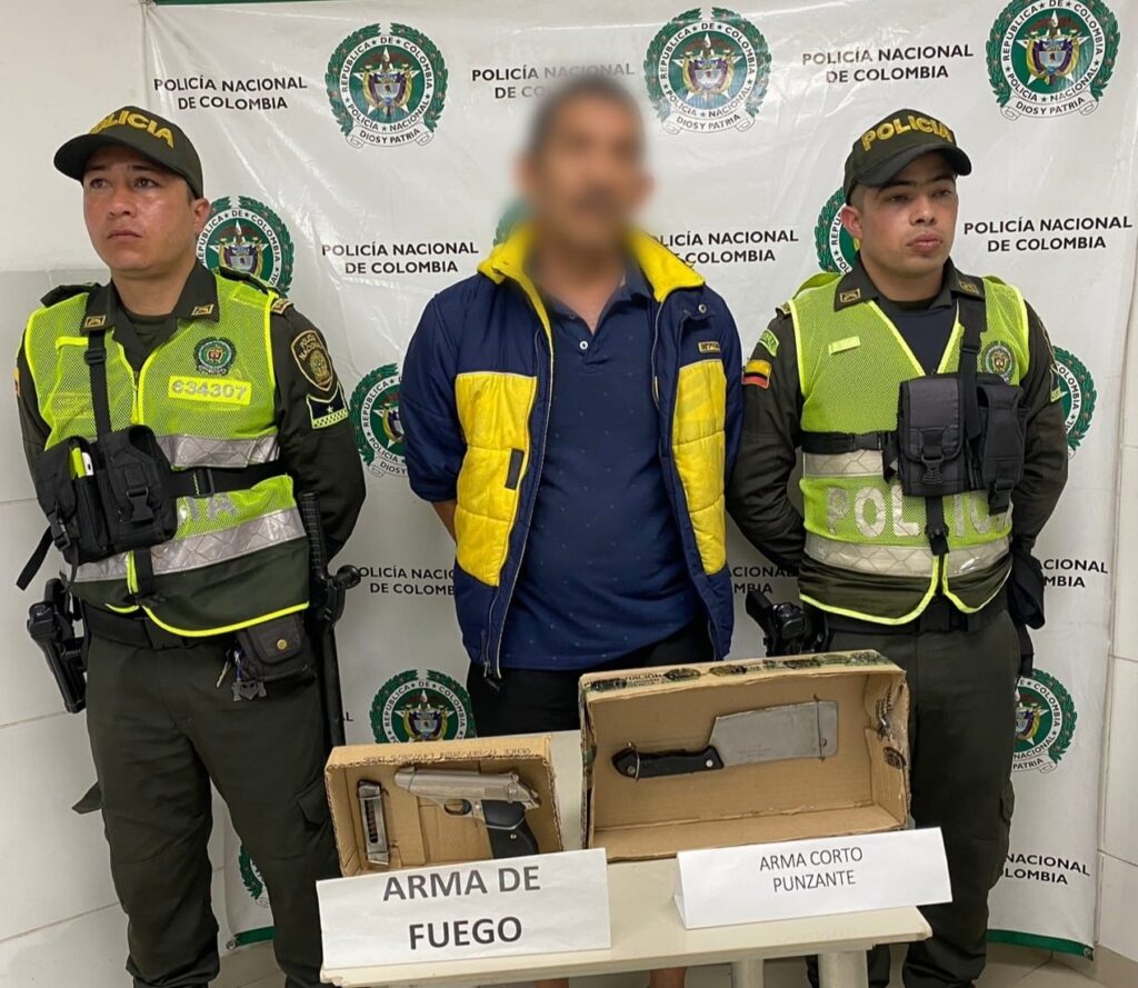 En desarrollo de planes estratégicos tendientes al control de delitos y comportamientos contrarios a la convivencia, en el sector residencial del barrio Los Tunjos 1, integrantes del cuadrante 30 del CAI Mirolindo lograron la captura en flagrancia un ciudadano de 67 años de edad, debido a que le fue hallado en su poder un arma de fuego tipo pistola avaluada en 12 millones de pesos y un arma cortopunzante.