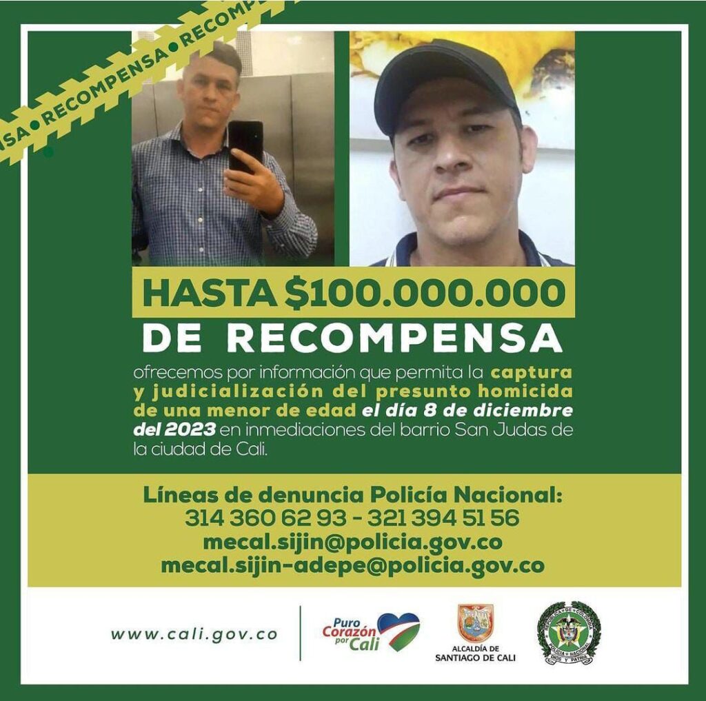Las autoridades han identificado al presunto autor del feminicidio y han compartido imágenes, ofreciendo una recompensa de 100 millones de pesos por información que pueda llevar a su captura. Según los informes, responde al nombre de Harold Andrés Echeverry.