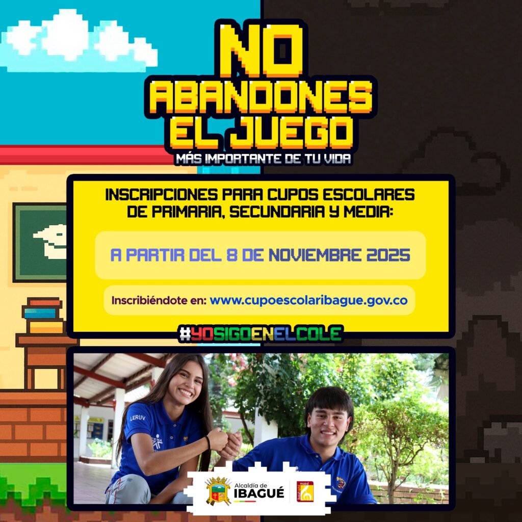 El proceso se realiza de manera virtual, de forma gratuita, rápida y transparente, a través de la plataforma www.cupoescolaribague.gov.co, desde este sábado 8 de noviembre se pueden realizar inscripciones para los grados de primaria, secundaria y media.