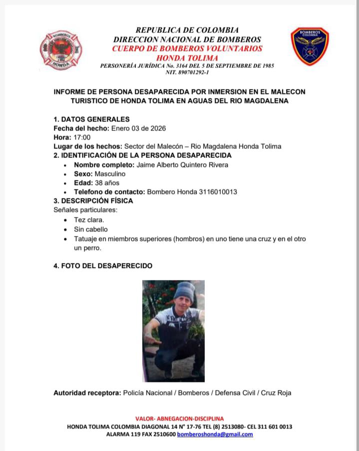 Durante la tarde del sábado, las aguas del río Magdalena en el municipio de Honda se apropiaron de una vida bajo la fuerza de su corriente.
