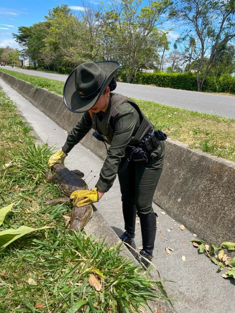 Asimismo, frente a un establecimiento comercial, se rescató una babilla que posteriormente fue reubicada en su entorno natural siguiendo los protocolos establecidos.