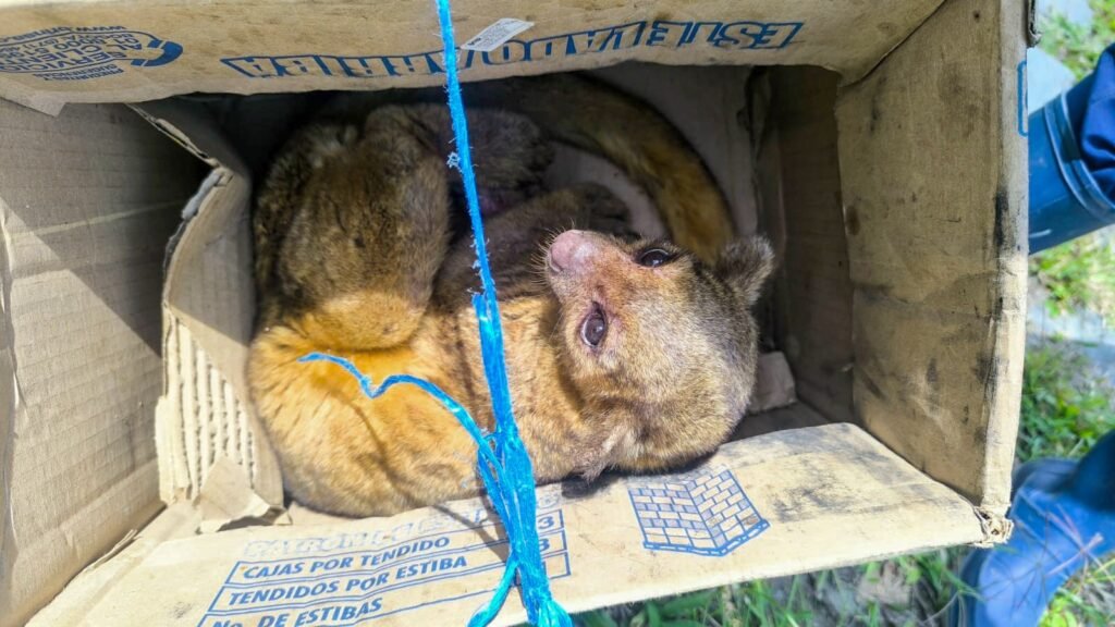 En la avenida Ambalá, barrio Viveros, una ciudadana alertó a la Policía Ambiental sobre la presencia de una nutria, que fue trasladada y puesta a disposición de la autoridad ambiental.