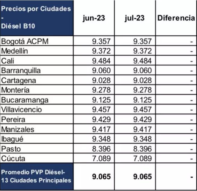 Por otro lado, el precio del ACPM se mantendrá igual que el mes pasado.